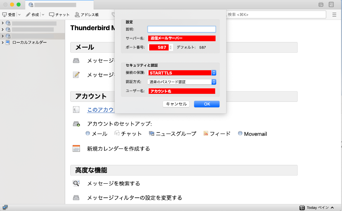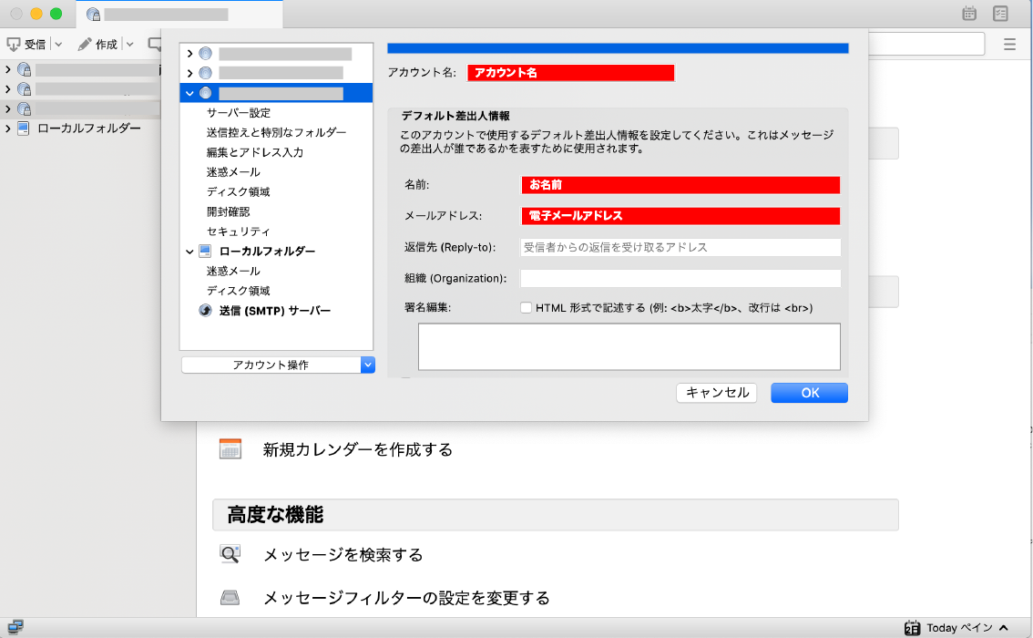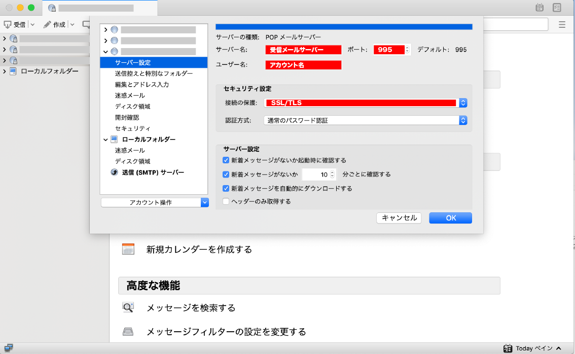 【Mac】Thunderbird POP3設定方法