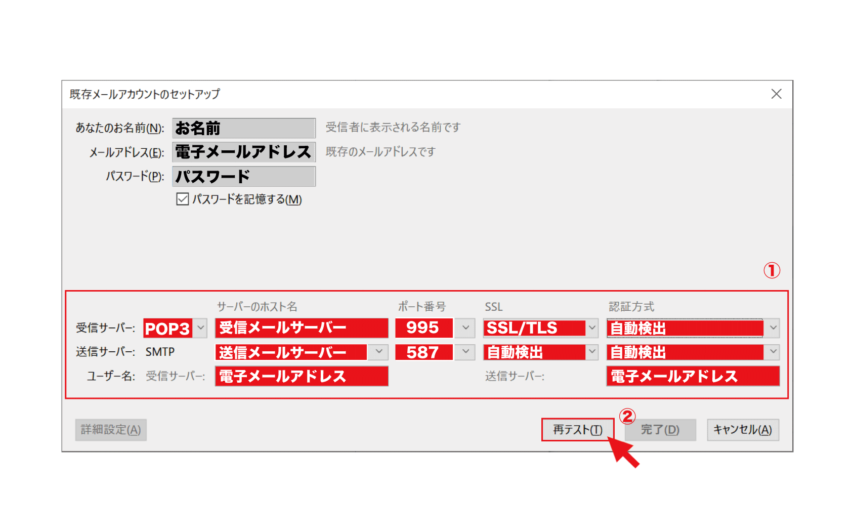 5. 【完了】をクリックし、メールの送受信を行い、正常に動いているか確認