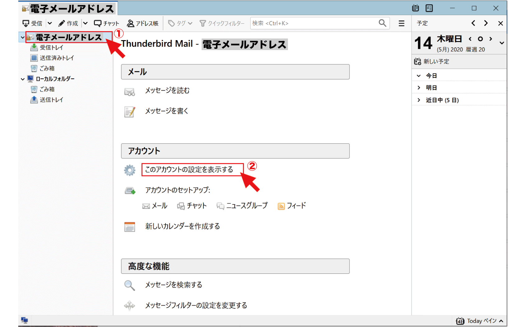 1. アカウントをクリックし、【このアカウントの設定を表示する】をクリック