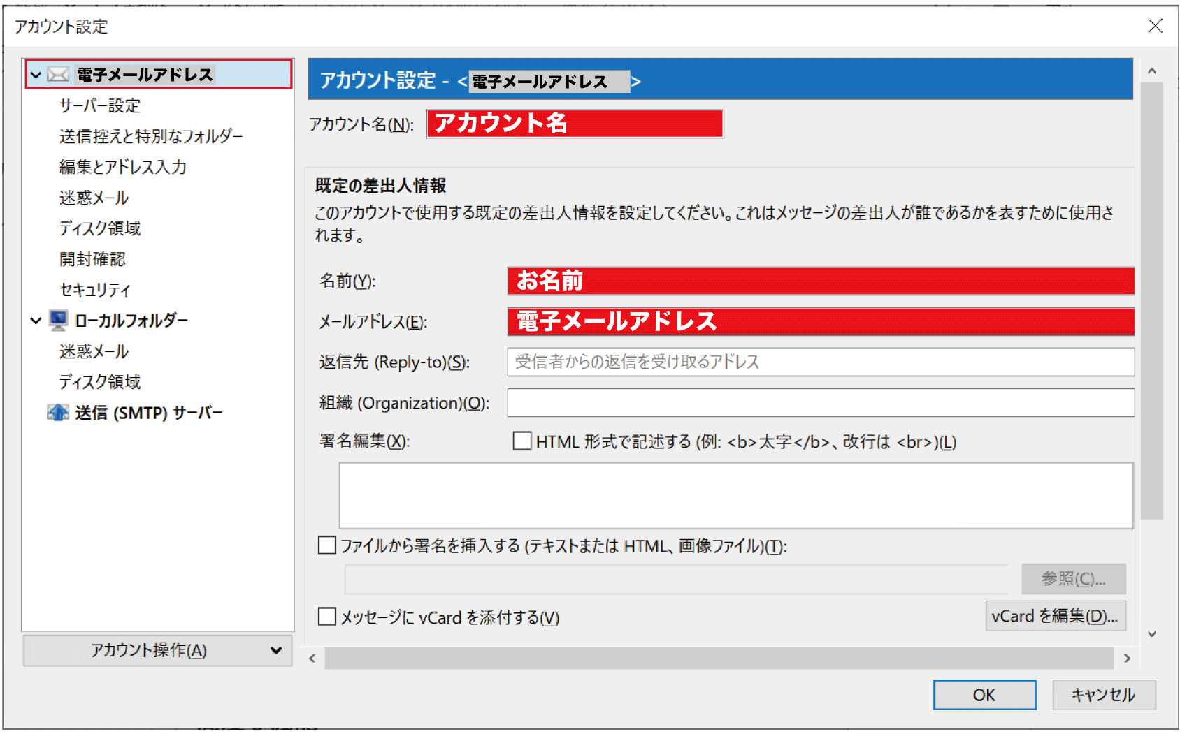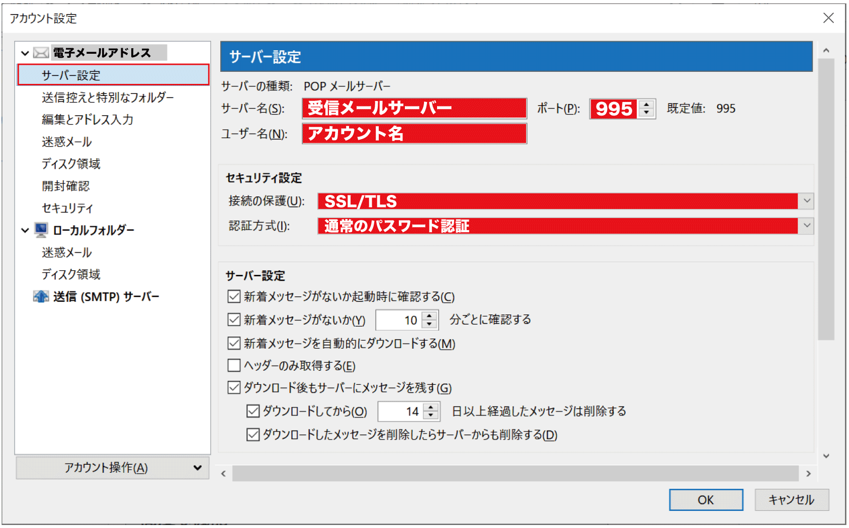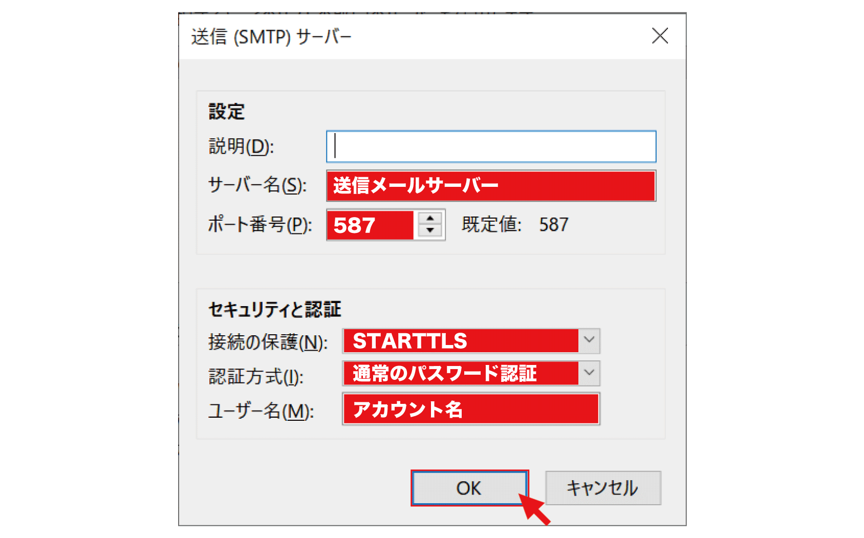 設定内容については、お送りしているメール設定情報をご確認ください。