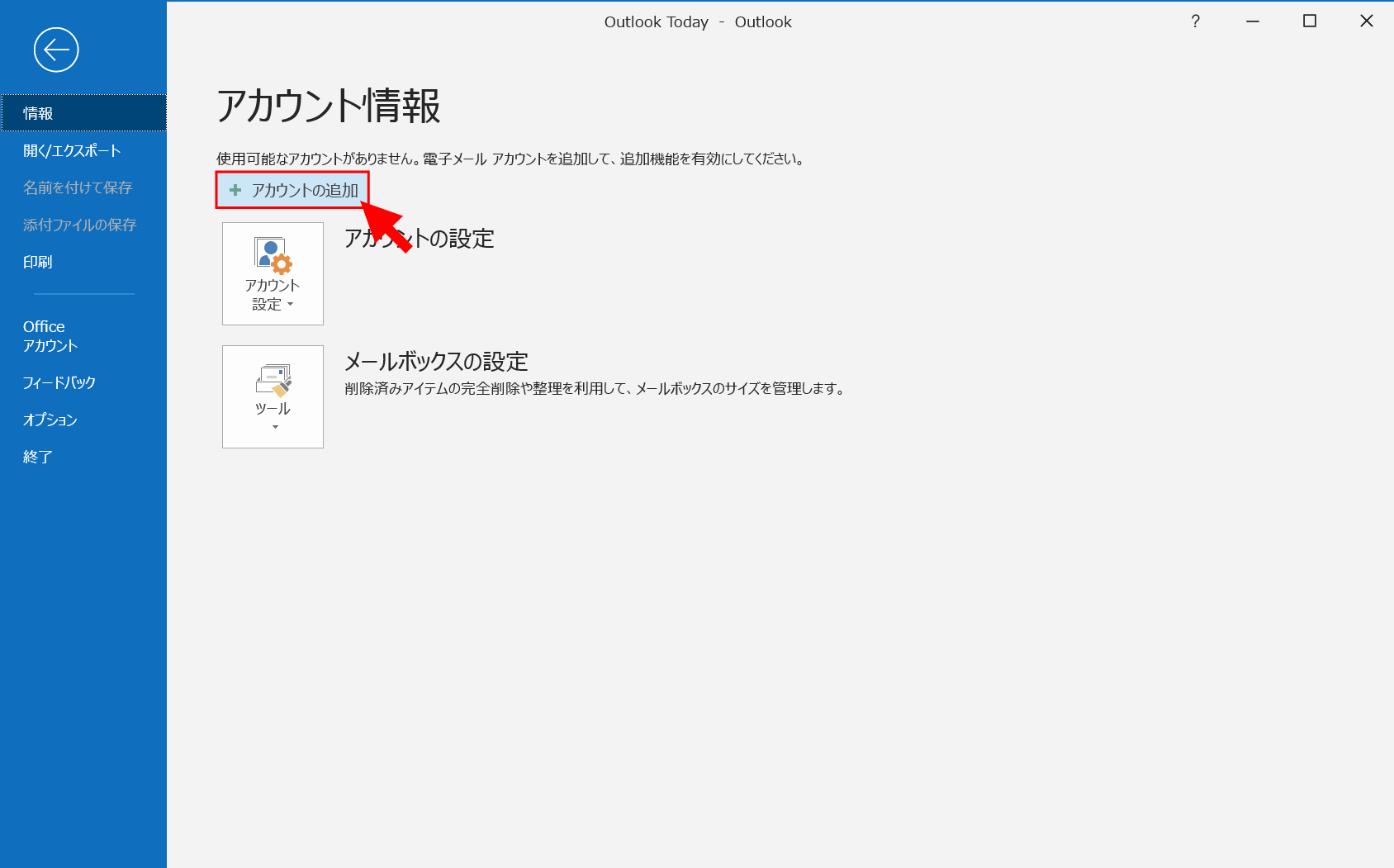 2. 【アカウントの追加】をクリック
