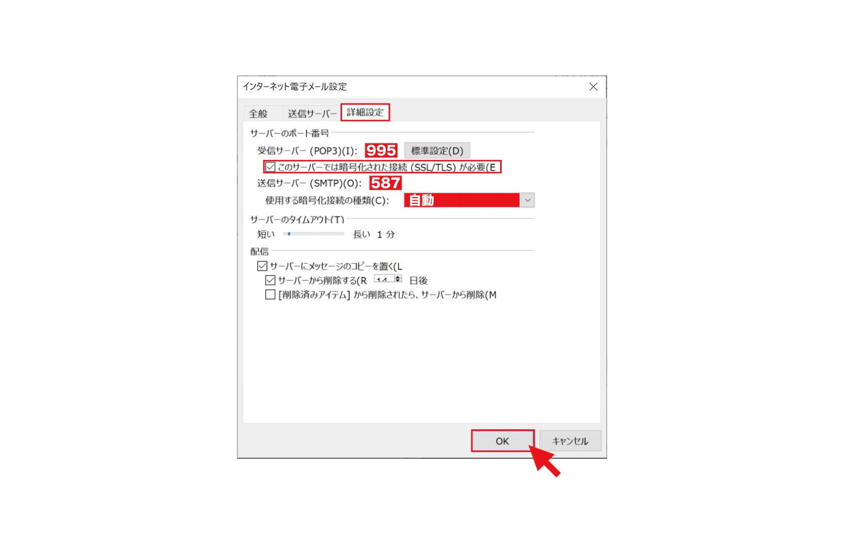 送信サーバー(SMTP):587